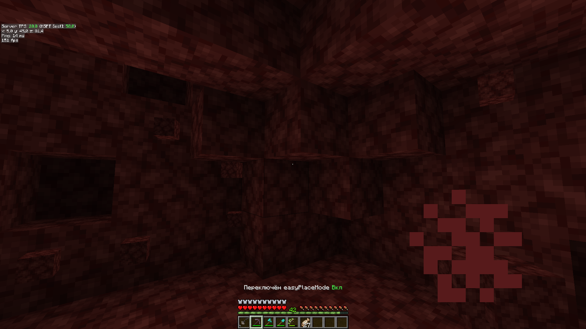 Включите easyPlaceMode клавишей, на которую вы забиндили и зажмите ПКМ, теперь вы копаете более 20 блоков в секунду