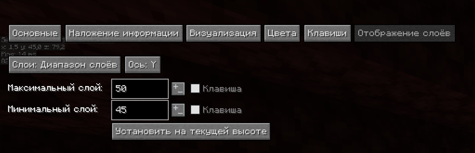 Зайдите во вкладку "Отображение слоёв" и нажмите "Установить на текущей высоте" и далее поднимите Максимальный слой на 5 блоков вверх